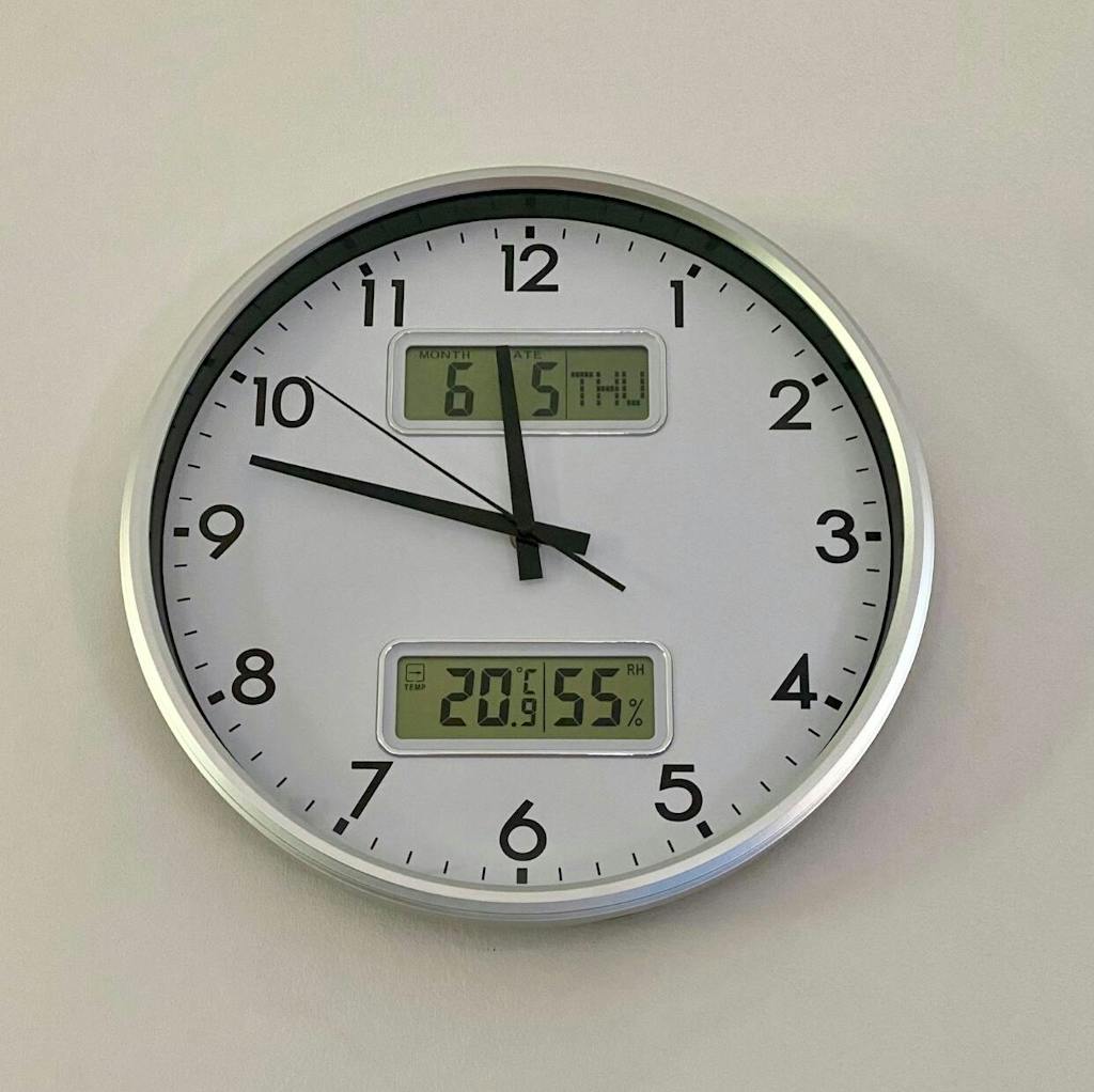 Victory Hayes Analog with Digital Date Day Temp Hygro Wall Clock Silver 32cm CJB-236S 6