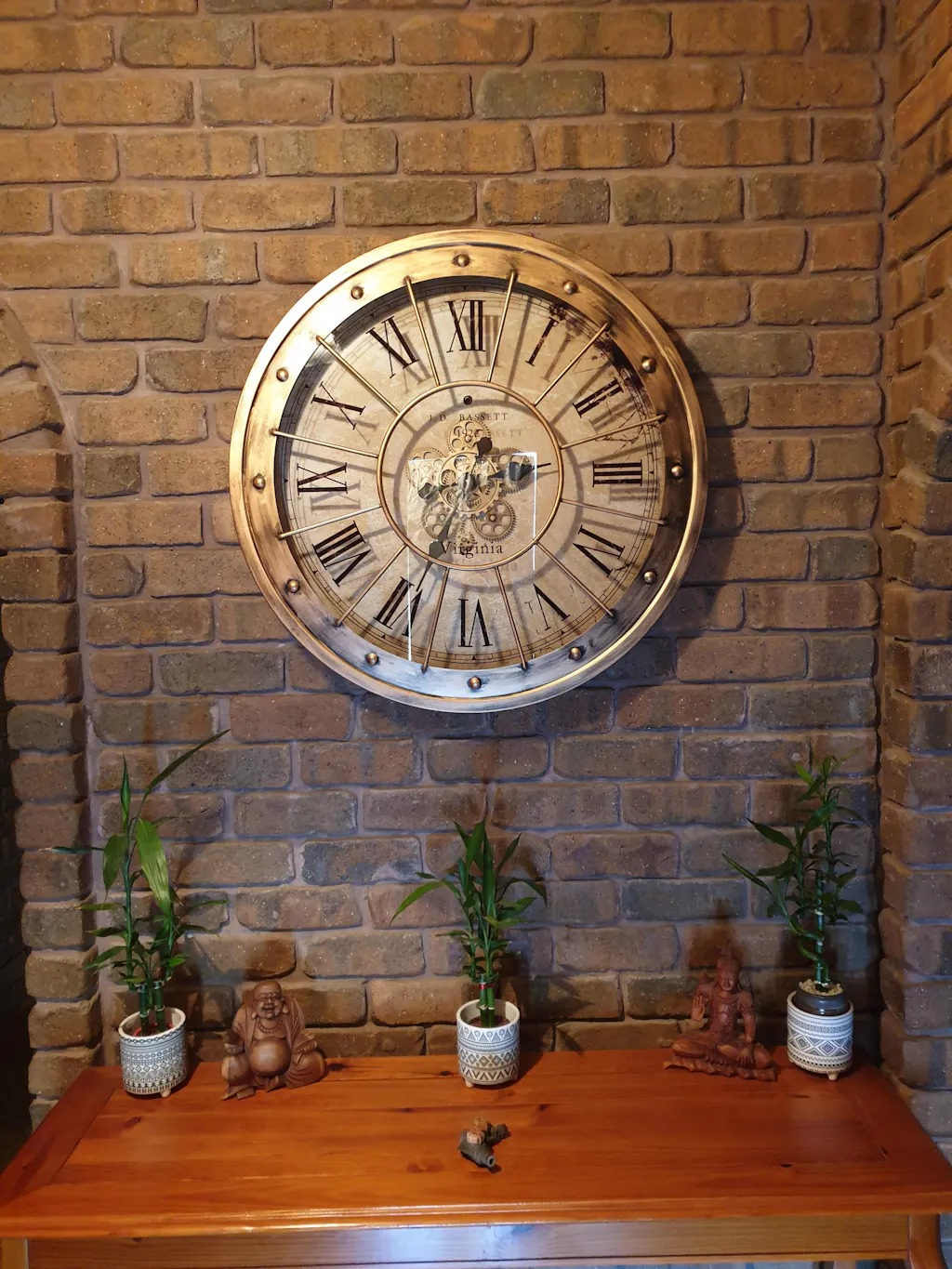 - Batteries required: 1 x AA for the clock, 2 x AA for the rotating cogs (not included)