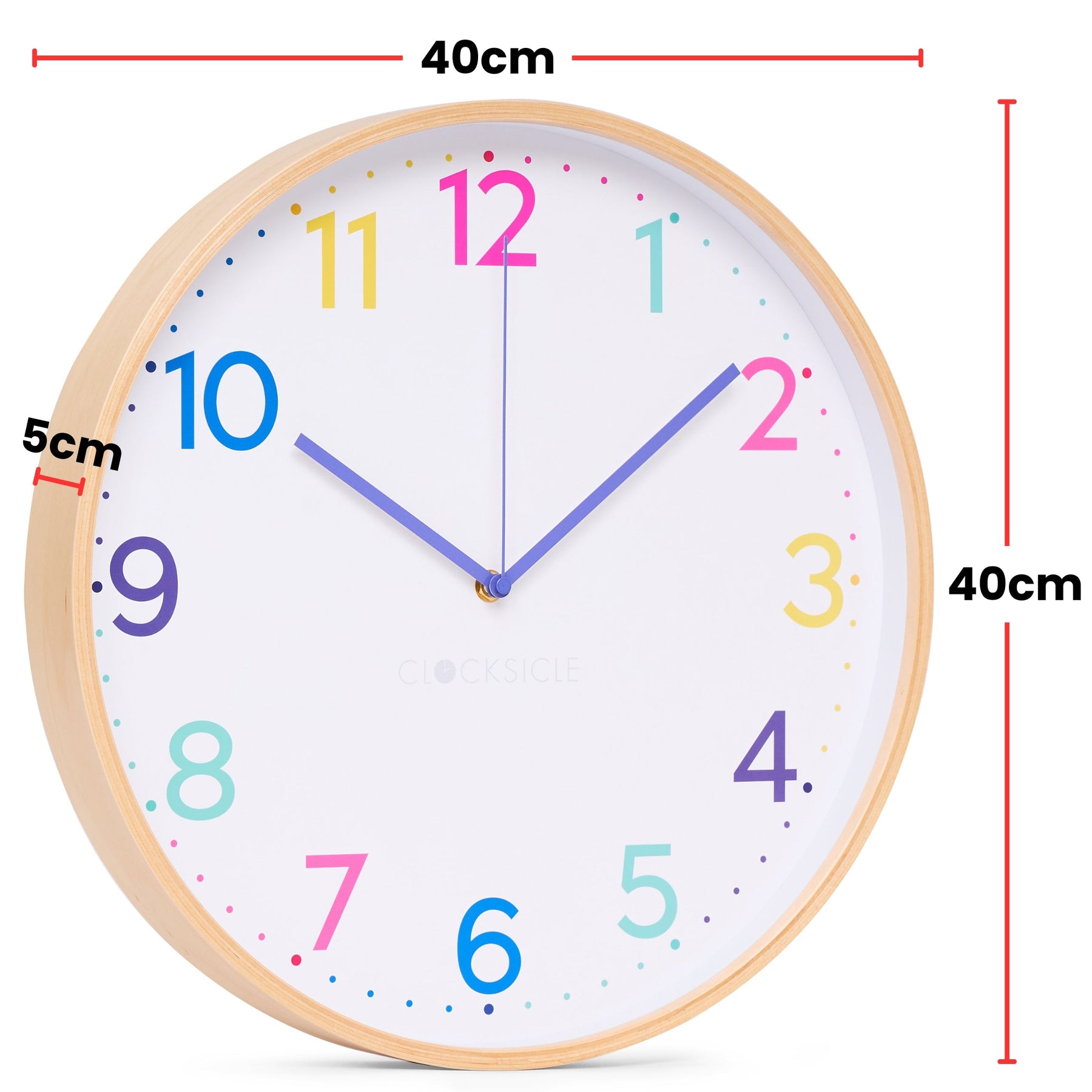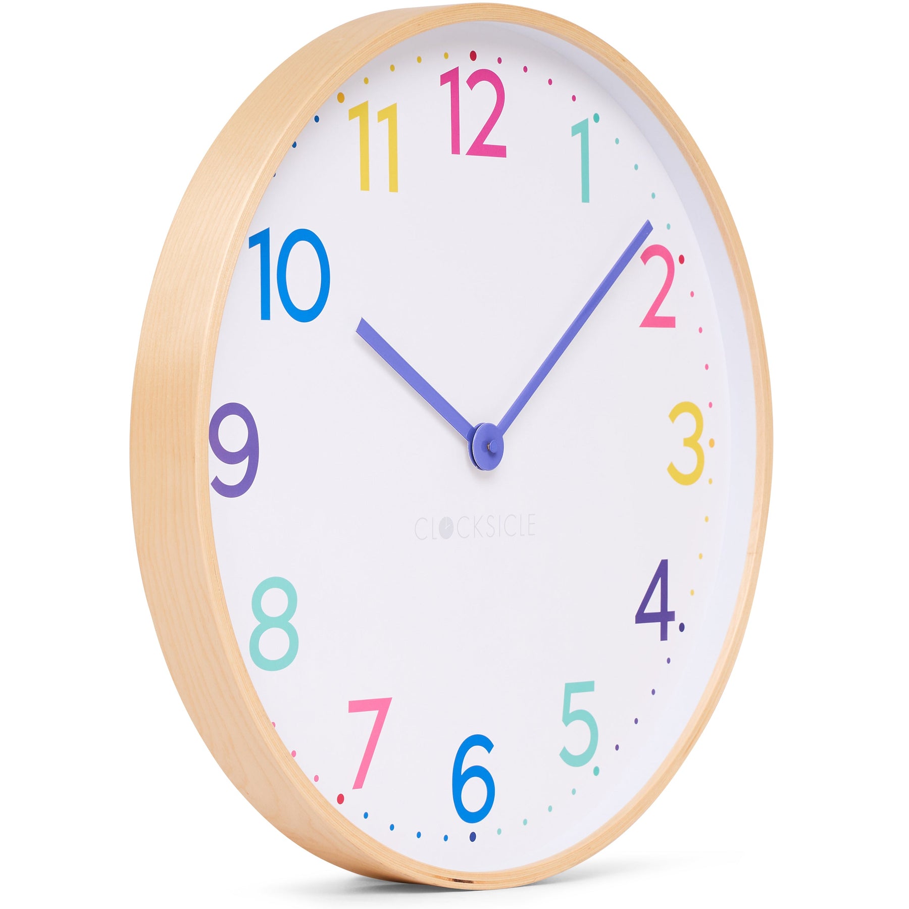The Neon Rainbow Clocksicle wall clock radiates fun with every second sparkling - available in compact 31cm, elegant 40cm, or oversized 50cm sizes to suit any space. Featuring a white backdrop with multi-coloured numerals in neon yellow, pink, purple, blue, and teal, paired with bold purple hands, it makes telling time effortless from across the room. Its completely silent movement guarantees zero distractions, while the birch wood frame adds a natural contrast to the vibrant neon rainbow design. Protected by a durable glass lens, this Australian-designed delight is built to last and loved by interior enthusiasts for its playful charm. Ideal for kitchens, studies, nurseries, living rooms, offices, bedrooms, open-plan areas, or dining spaces, it’s also available in eight other stunning colour styles to match any taste. Backed by a 2-year warranty, it’s as reliable as it is eye-popping - ready to brighten your space today.
