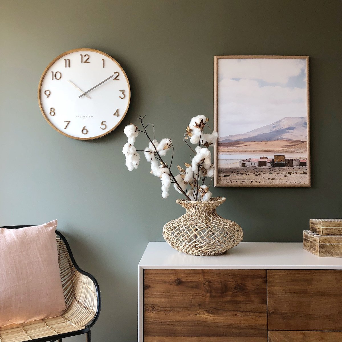 The One Six Eight London Scarlett Wall Clock is the epitome of a masterful creation that is garlanded with traces of retro charm. This modern clean design clad in white colour is accentuated with wooden Arabic numbers wrapped around an attractive solid wood frame with touches of natural grain making it a welcome addition to any Scandi inspired living room. An art work in motion, crown your modern abode with this beautiful timekeeping creation.