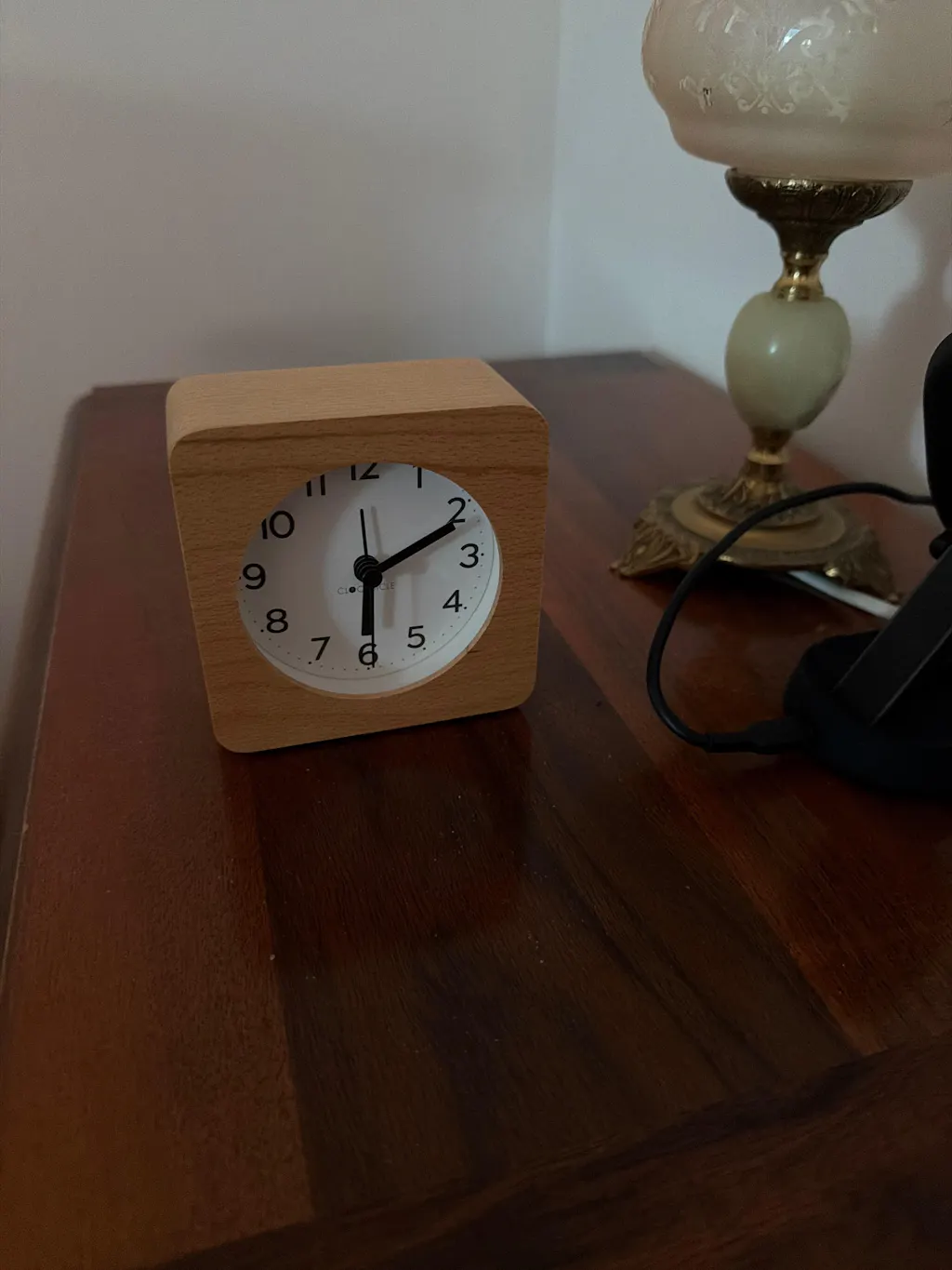The bedside clock that redefines elegance - every second counts. Showcasing a sleek black design with bold black numerals and hands, this 10cm Clocksicle alarm clock blends timeless sophistication with modern functionality. Its silent sweep movement ensures peaceful sleep, while the gentle backlight and snooze function make night-time checks and wake-ups effortless. Crafted with a premium beech wood case and protected by a durable glass lens, this Australian-designed beauty is built to last and adored by style enthusiasts for its minimalist charm. Perfect for your bedroom, desk, or side table, it’s a fresh take on classic timekeeping, Backed by a 2-year warranty - ready to elevate your space today.