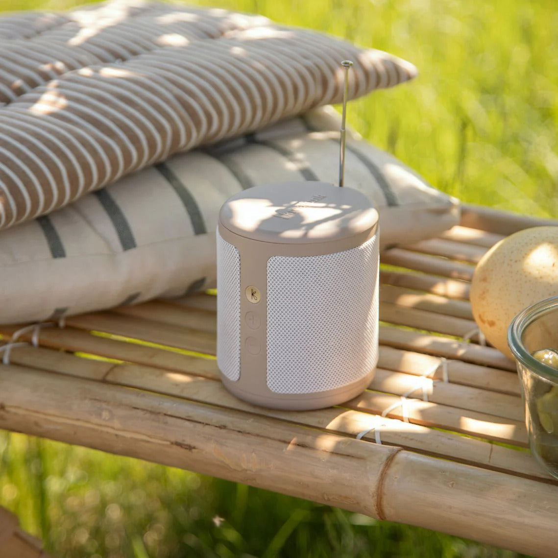 Timeless elegance meets modern functionality in this ivory sand DAB+/FM radio and Bluetooth speaker that enhances any living space. The warm, neutral tone and premium recycled polyester fabric grille create a sophisticated aesthetic that complements both contemporary and classic interiors. Featuring DAB+, FM, and Bluetooth 5.3 connectivity, it delivers crystal-clear audio through its 6W speaker while offering the convenience of storing 40 preset stations. The innovative wireless charging surface transforms it into a multifunctional hub, eliminating cable clutter while keeping devices powered. At 410g with IPX4 water resistance, it transitions seamlessly from kitchen breakfast companion to outdoor entertainment system with 14 hours of reliable playback.