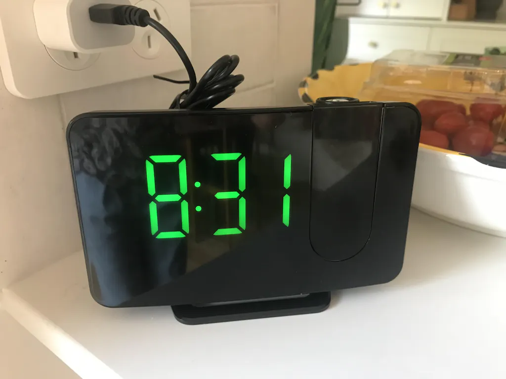 - Option to project the time onto a nearby wall or ceiling
