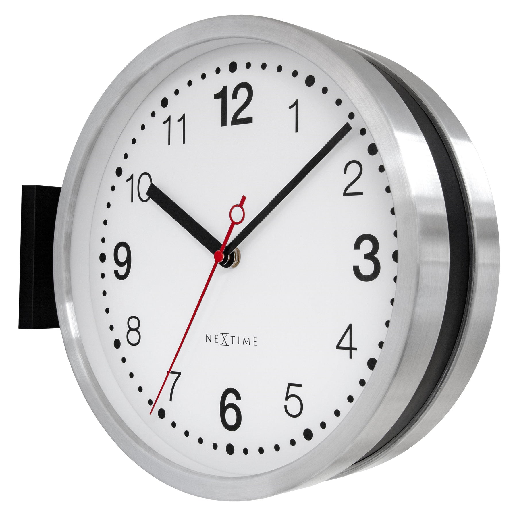 Experience timekeeping from every angle with this innovative double-sided station clock that brings industrial sophistication to modern interiors. Featuring contrasting white and black dials mounted back-to-back in a sleek aluminium frame, this versatile piece offers visual interest no matter where you're standing. At 32cm, it's perfectly proportioned for hallways, room dividers, or any space where visibility from multiple directions matters. The dual-dial design creates a striking aesthetic balance while maintaining practical functionality - each face operates independently, allowing you to set different time zones or simply enjoy the dynamic interplay of light and dark. Silent movement ensures your environment remains peacefully undisturbed, making it ideal for offices, studios, or open-plan living areas where tranquillity and style converge.