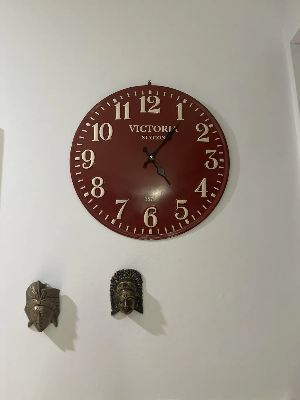 Funky in red, this Victoria Station Embossed Numbers Domed Metal Wall Clock is a welcome pop of colour to your space. The embossed white Arabic numbers add even more character to the clock, making it totally hard to miss. This clock is perfect for either those who want to add a little splash of colour into their space but don't want to go all the way with the rest of the items, or the brave ones who already have everything planned out and need one more thing to complete the feel they want to go for.